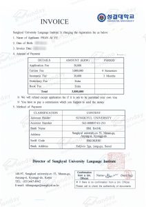 - Học phí : 3.800.000won/năm