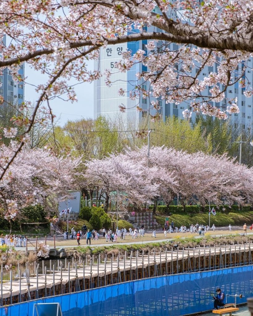 Suối Oncheon cheon là một trong số đó. Vào cuối tháng 3, khung cảnh trở nên nổi bật với màu hồng của hoa anh đào phía trên, màu vàng của hoa cải phía dưới, tạo nên khung cảnh đẹp như tranh. Địa chỉ: 81-2, Nakmin-dong, Dongnae-gu, Busan.