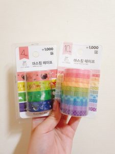 Mặt hàng này thì rẻ không cần trả giá với chỉ 1.000KRW/4 cuộn băng dán nhỏ xinh yêu. Người tiêu dùng có thể thỏa sức chọn lựa hoa văn như chấm bi tối giản, các loài động vật, các loài hoa… Giá rẻ lại đẹp, mấy ai có thể làm ngơ!